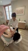 Allongé sur le ventre, le massage du dos s'étend du sacrum jusqu’au creux occipitaux et allongé sur le dos, je poursuis par le décolleté, les épaules en insistant sur les trapèzes, la nuque et les bras sans oublier le cuir chevelu.